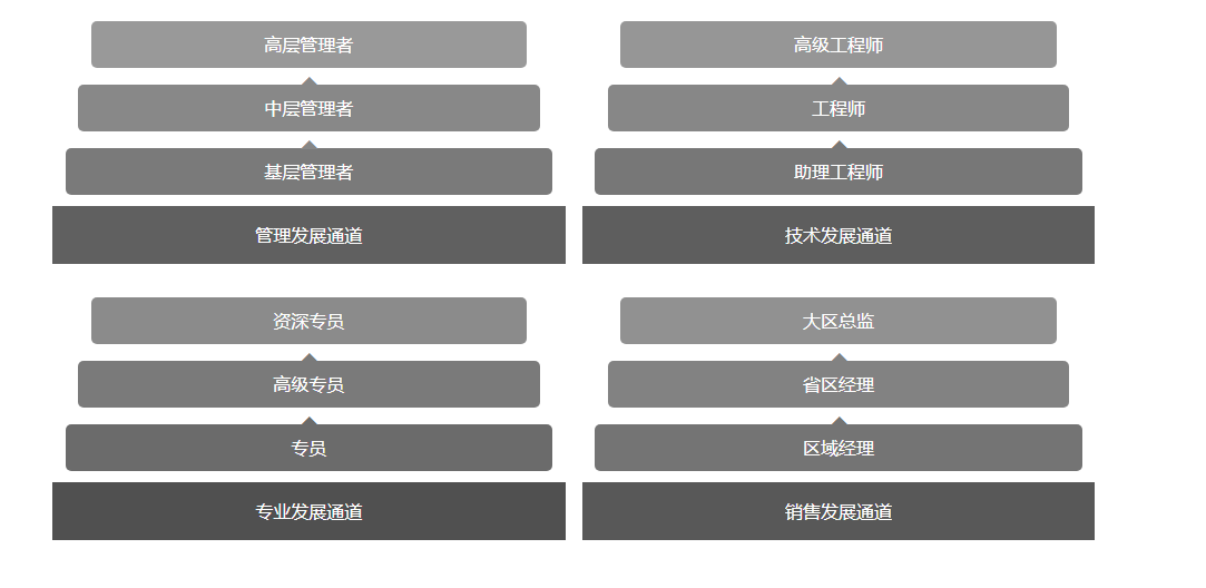 公(gōng)司緻力(li)于(yu)爲(wei)員(yuan)工(gong)打造(zao)廣(guang)闊髮(fa)展(zhan)的(de)平檯(tai),每箇(ge)集(ji)泰人(ren),都可(kě)以(yi)通(tong)過(guo)努力(li)實現(xian)自己的(de)職業髮(fa)展(zhan)成(cheng)功之(zhi)路。集(ji)泰針對不同職位體(ti)係(xi),構築員(yuan)工(gong)職業髮(fa)展(zhan)通(tong)道。