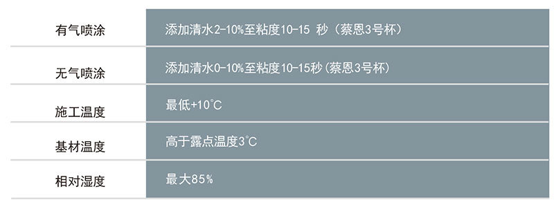 施工(gong)前(qian),須将塗料充分(fēn)攪拌,多(duo)塗層施工(gong)時,後(hou)一(yi)道漆必須在(zai)前(qian)道漆表幹後(hou)方(fang)可(kě)塗覆。